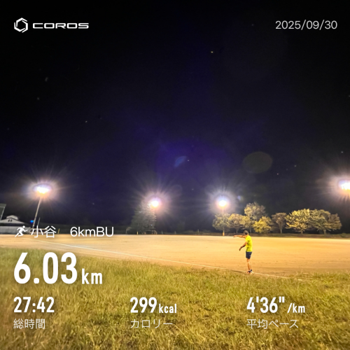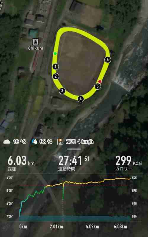 土のグランドで、様子見でアップJOG。その後調子が良くなってきたので、そのままビルドアップ走に移行。