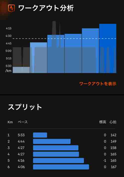 4:20/kmペースまで上げられたら良いな、と思っていたところ、メンバーの方にラスト1km引っ張ってもらい、4:10/km切まで上げてもらってFINISH。