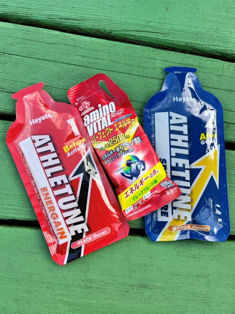 スタート30分前 ATHLETUNEの赤ジェル、カフェイン1粒