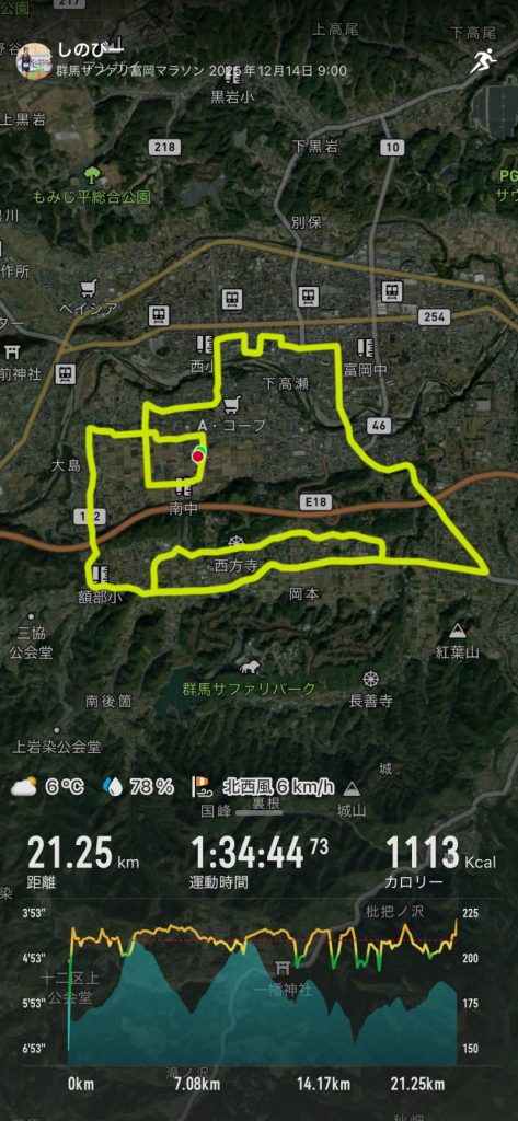 2025年12月14日 群馬県富岡市で開催された、群馬サファリ富岡マラソンのハーフマラソンの部に参加しました。