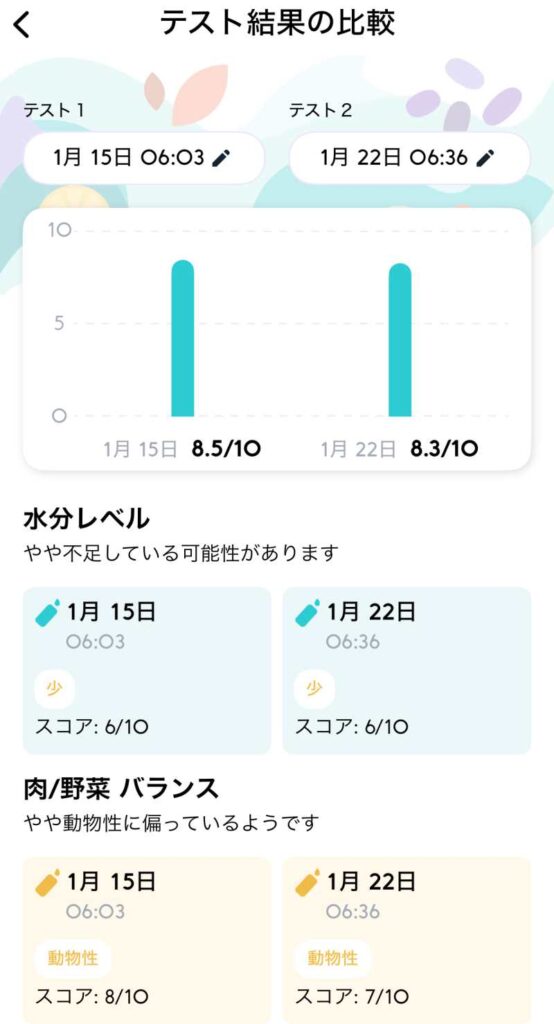 まだ2回しか測定していませんが、テスト結果を比較する機能もあります。