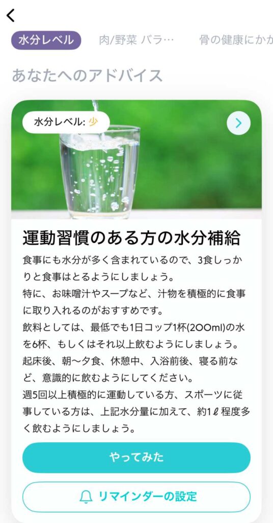 私の場合、日頃運動をしているので、もっと水分摂取しなければいけないのか、、、課題です。