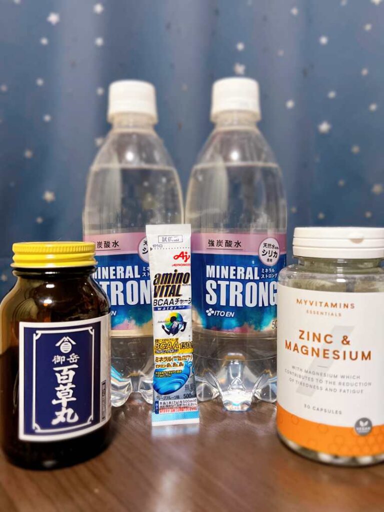ミネラル入りの炭酸水、マグネシウム、胃腸薬(百草丸)を毎日飲みました。