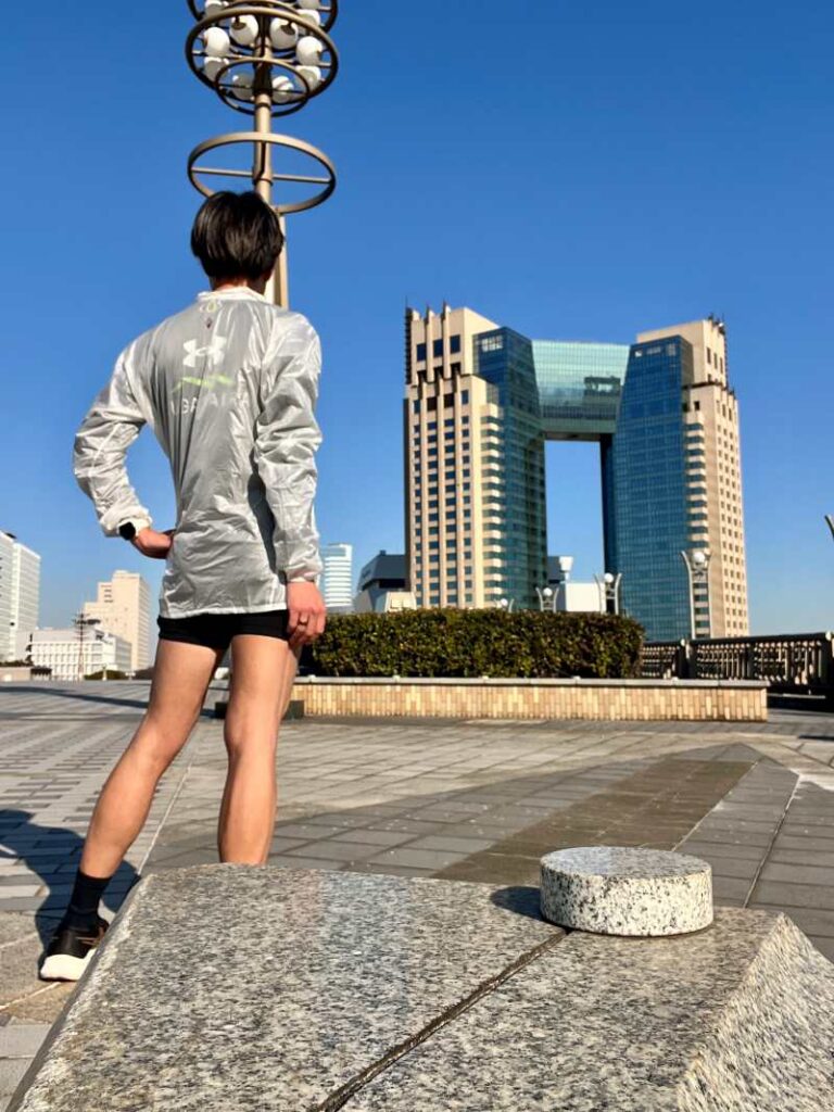 2月上旬、長野は真冬ですが、東京は暖かいので、短パンで走れるのは嬉しい!