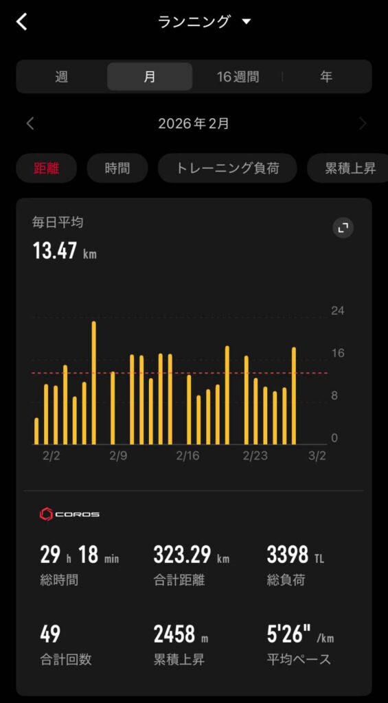 1月末に勝田マラソンを走ったばかりだったので、2月上旬はやや控えめに。