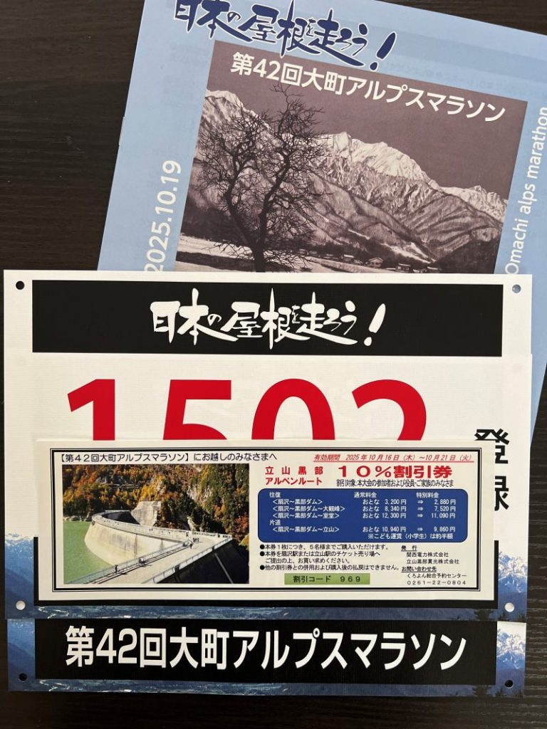 この時期は大会が多く、どの大会にしようか迷います。今まで10月に参加していた大会が無くなってしまったり、日程がズレてしまったりと、定まった大会が無かったので、今年は大町を走ることにしました。